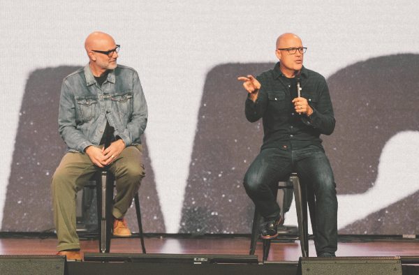 The weekend began with 600 worshippers at the Friday night service. Gillespie led a conversation with church founder Michael Knecht. The two spoke about the church's three core values: belonging, momentum, and experience.