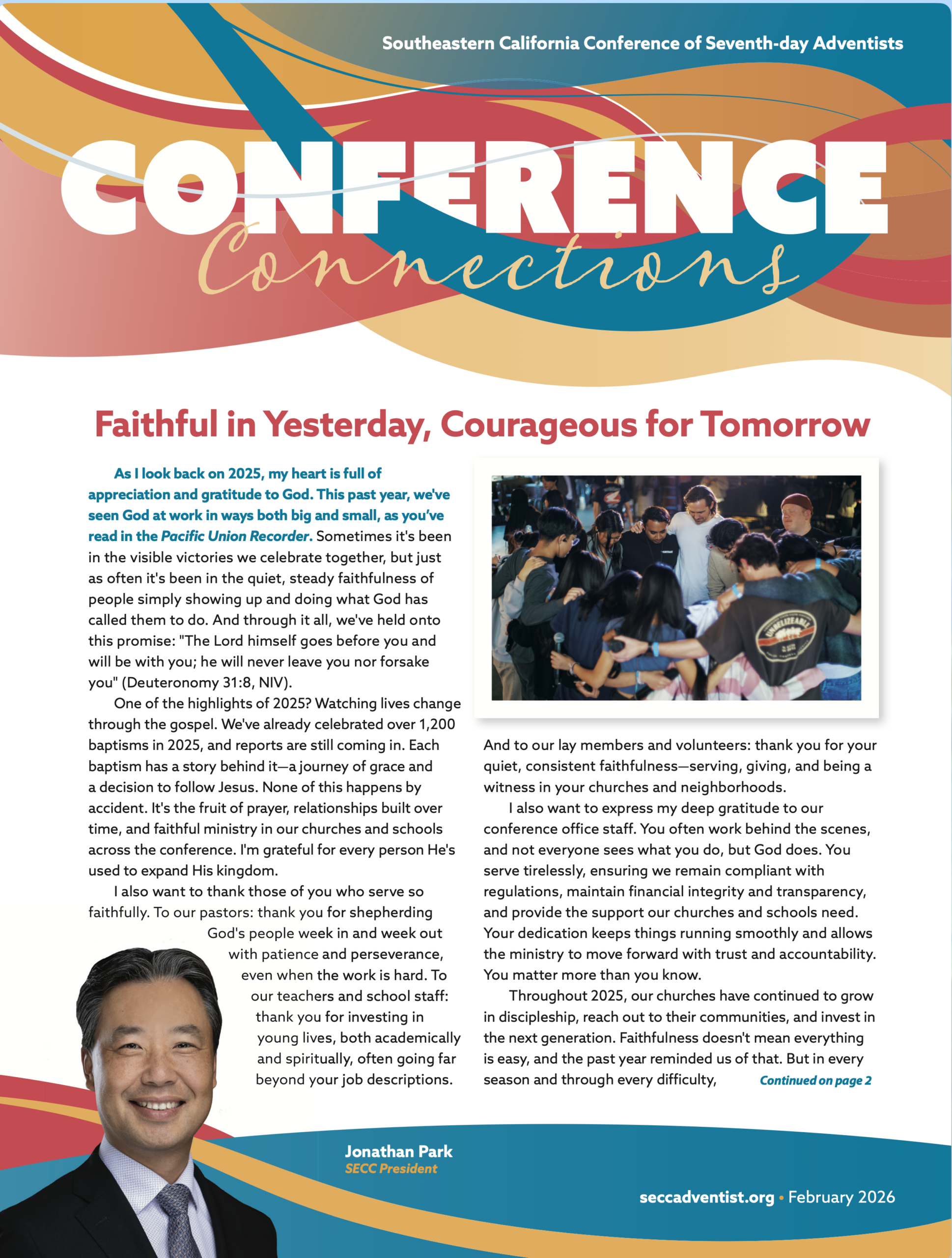 The Pacific Union Recorder is a monthly professional ministry journal that aims to keep the entire church family informed and encouraged. Each month we send news stories, photos, announcements, and obituaries to the Pacific Union Recorder. Six times a year we produce Conference Connections, a newsletter for SECC members that is inserted into the Recorder, focusing on conference people and business. If you have news for either of these publications, please send it to us at communications@seccsda.org.